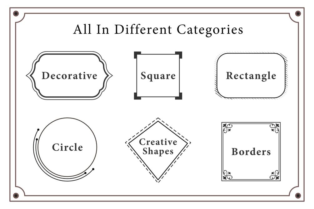 Custom made High res Frames and Borders in Assets pack for Affinity Programs.